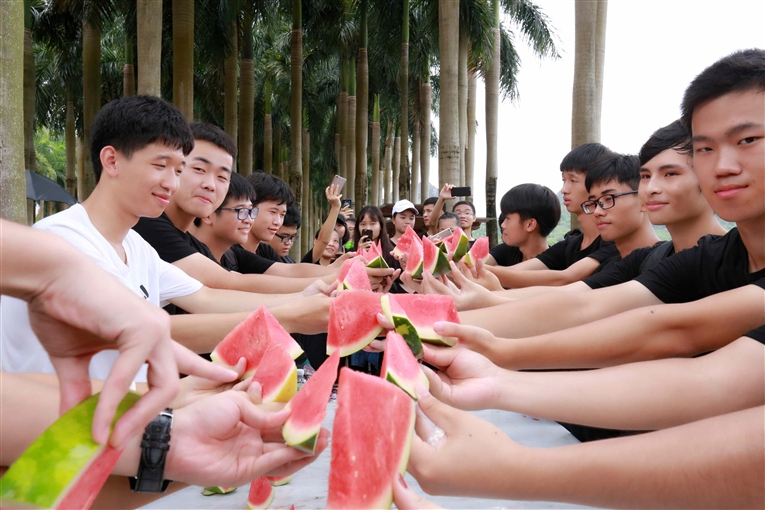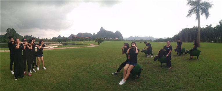 同学们浩浩荡荡地来到了拓展区,开始了期待已久的各项专业活动。师生互动积极参与了绑脚前行、搭肩前进、信任摔背、西瓜游戏比拼、椰林大道编导制作、创意团队摄制等大型户外专业实践活动。